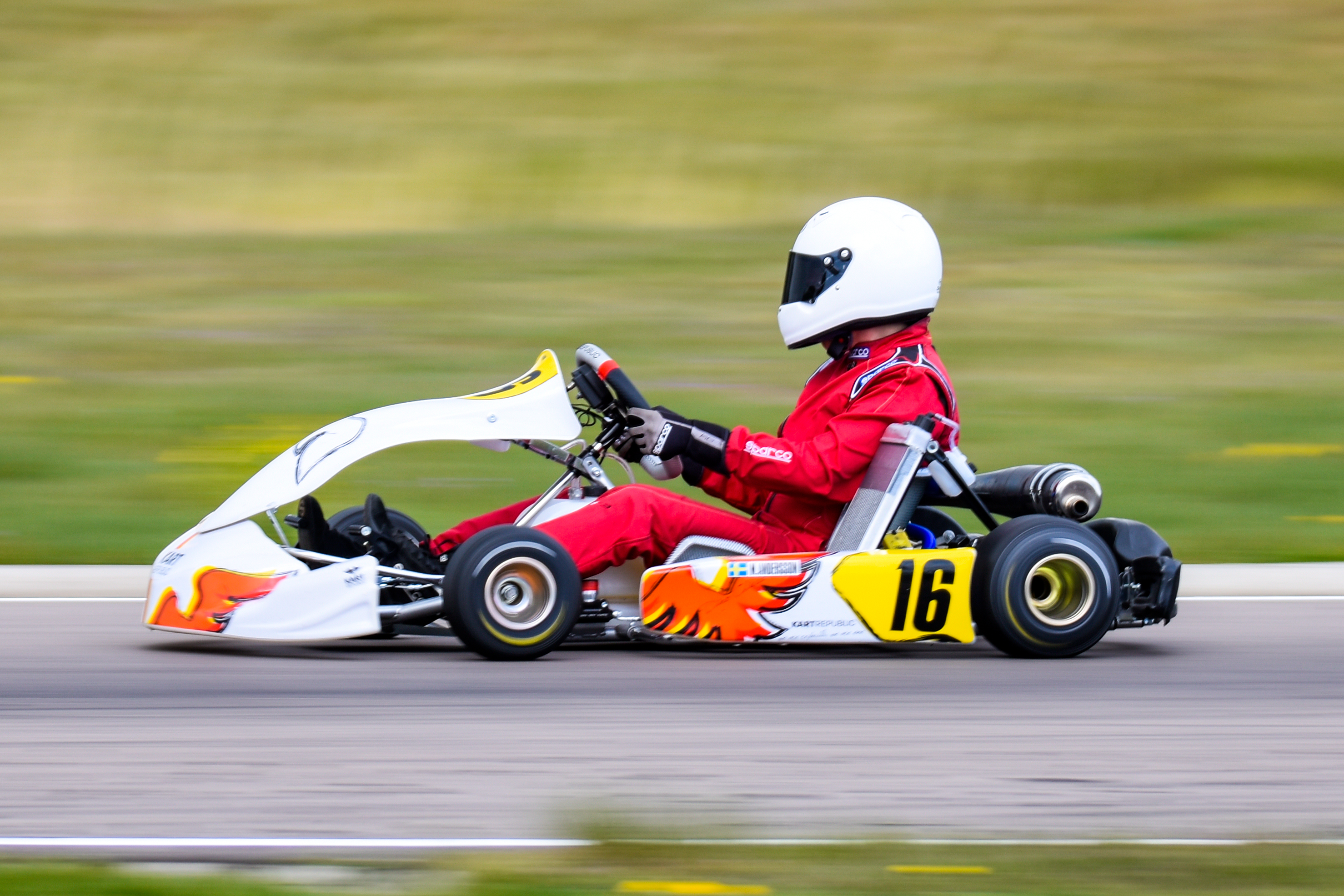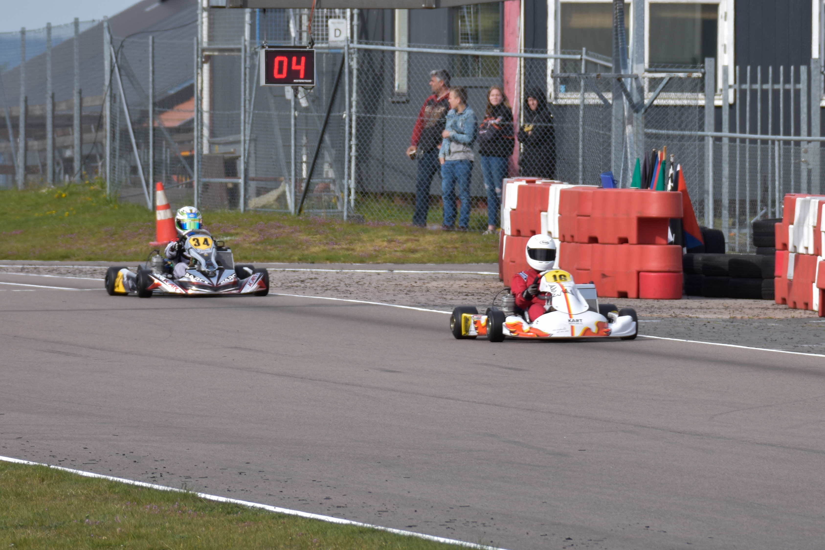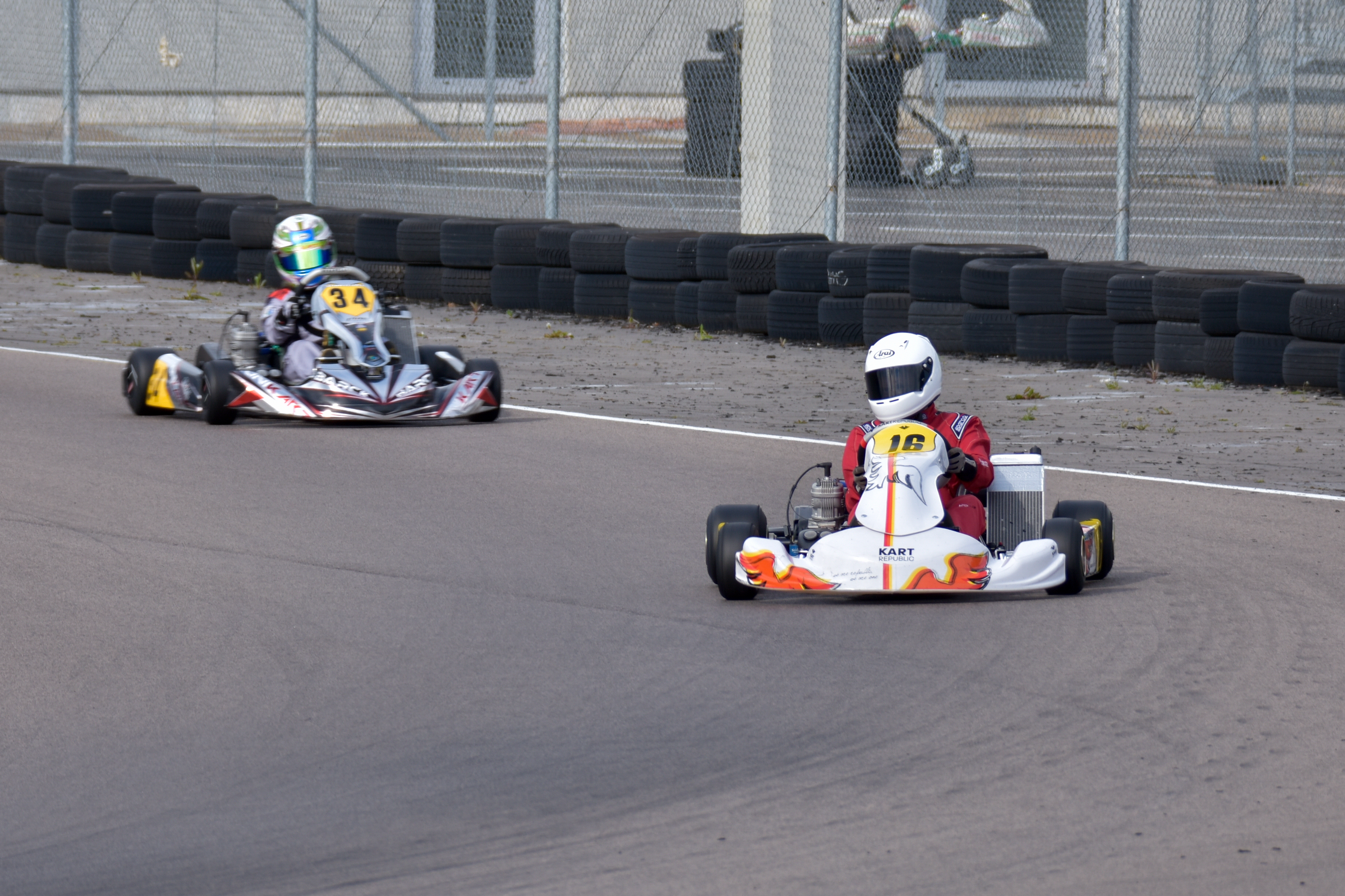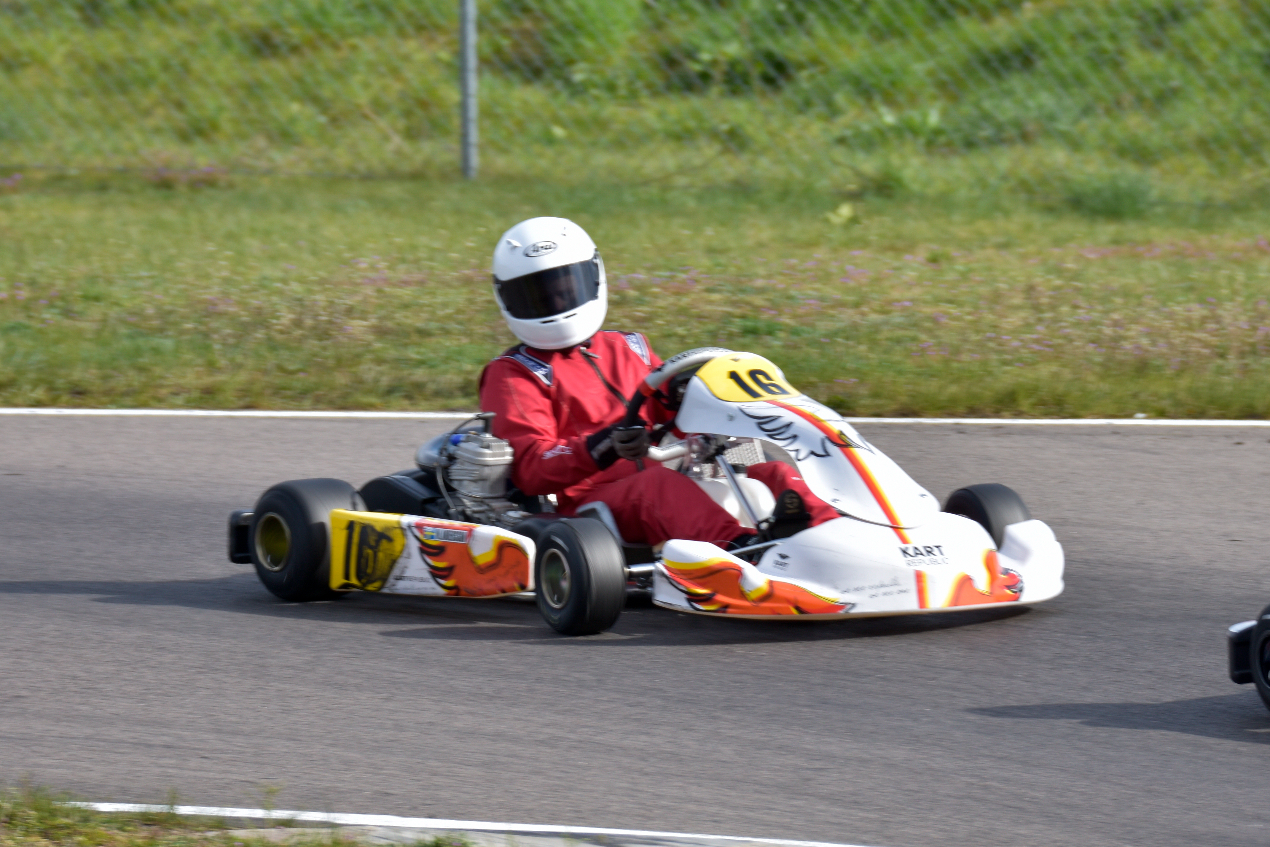 Idag testade vi ett nytt chassi, Kart Republic. Lite ovant inledningsvis, det var mycket nytt att lära om men det gick bättre och bättre. 36 tävlanden i J-125, tävlingen hade fått dispens att ha alla 36 förare i samma förfinal och final. Grymt trångt på banan, och många avåkningar och kraschar. Vädret var ganska ostadigt och regnet hängde i luften. Max var inte nöjd med sin placering, han kom 23:a av 36 tävlanden. Han fick dessutom sin första skriftliga varning ”ojust körning” p g a en omkörning i ett av kvalheaten med motiveringen att # 16 körde på #?? och vann en placering. Vi föräldrar var nöjda med helgen, såväl förare som mekaniker gjorde flera framsteg idag.