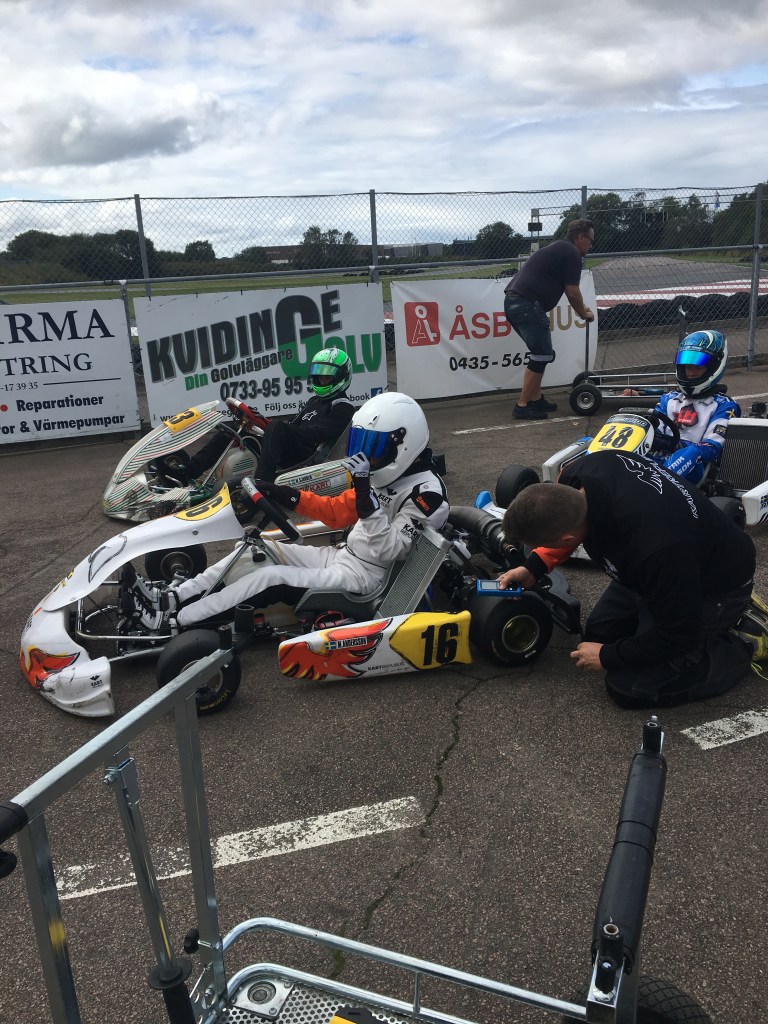 På lördagen var det Elvin som körde i klassen S(enior)125 och han slutade på en 8:onde plats. Det var lärorikt att titta på när de andra stora klasserna körde.