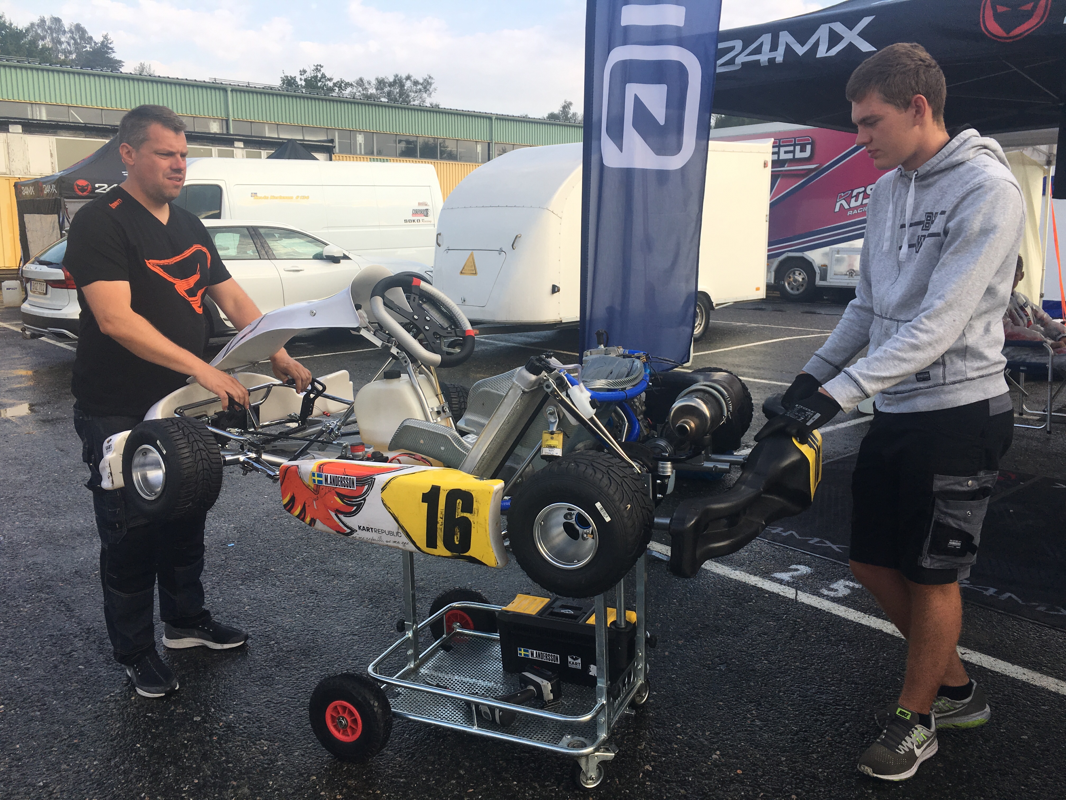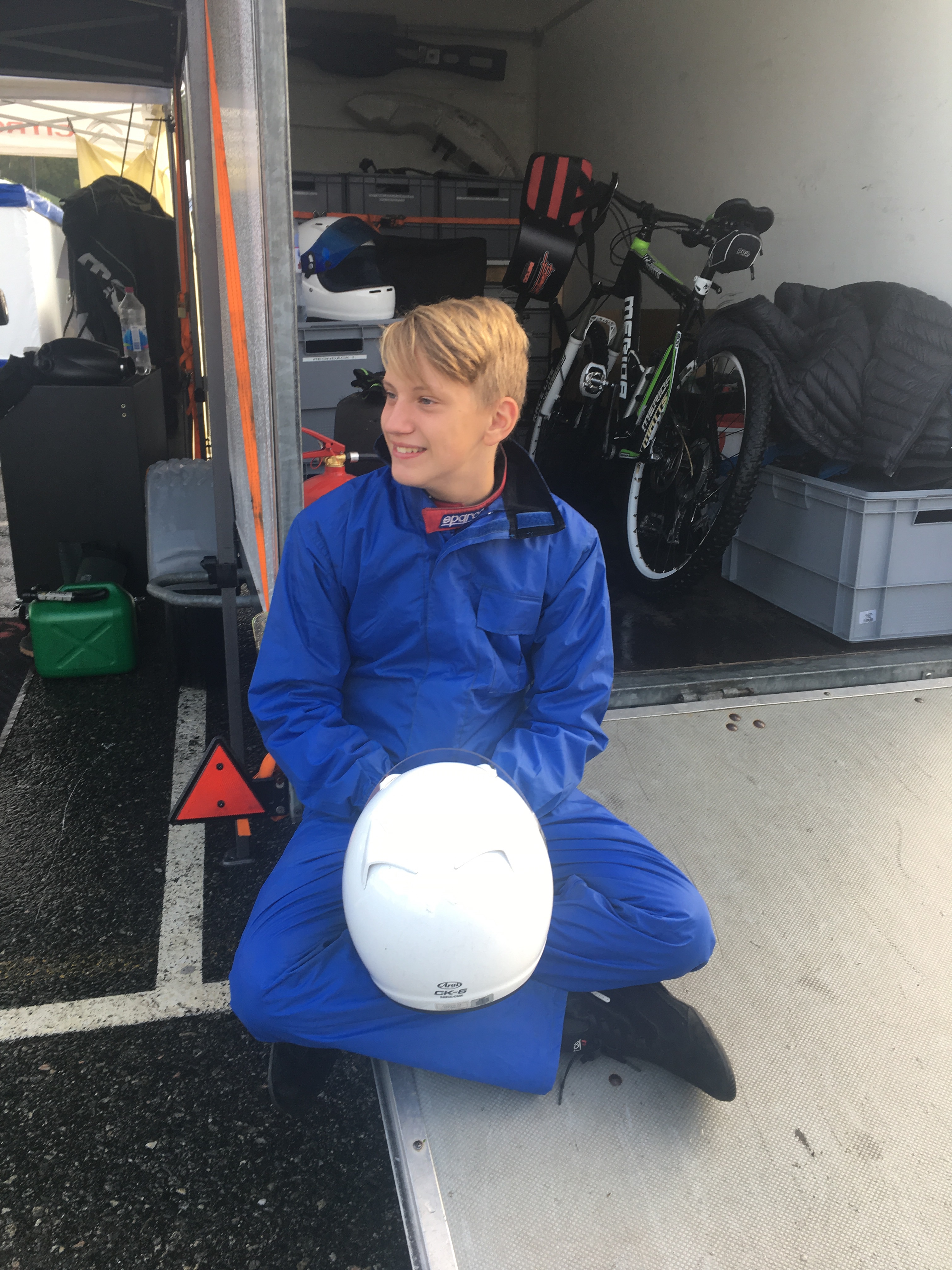 På söndagen var det min tur att köra, och självklart regnade det. Det är mer en regel än ett undantag numera. Pappa och Elvin testade olika typer av set-ups för att hitta det optimala åt mig.