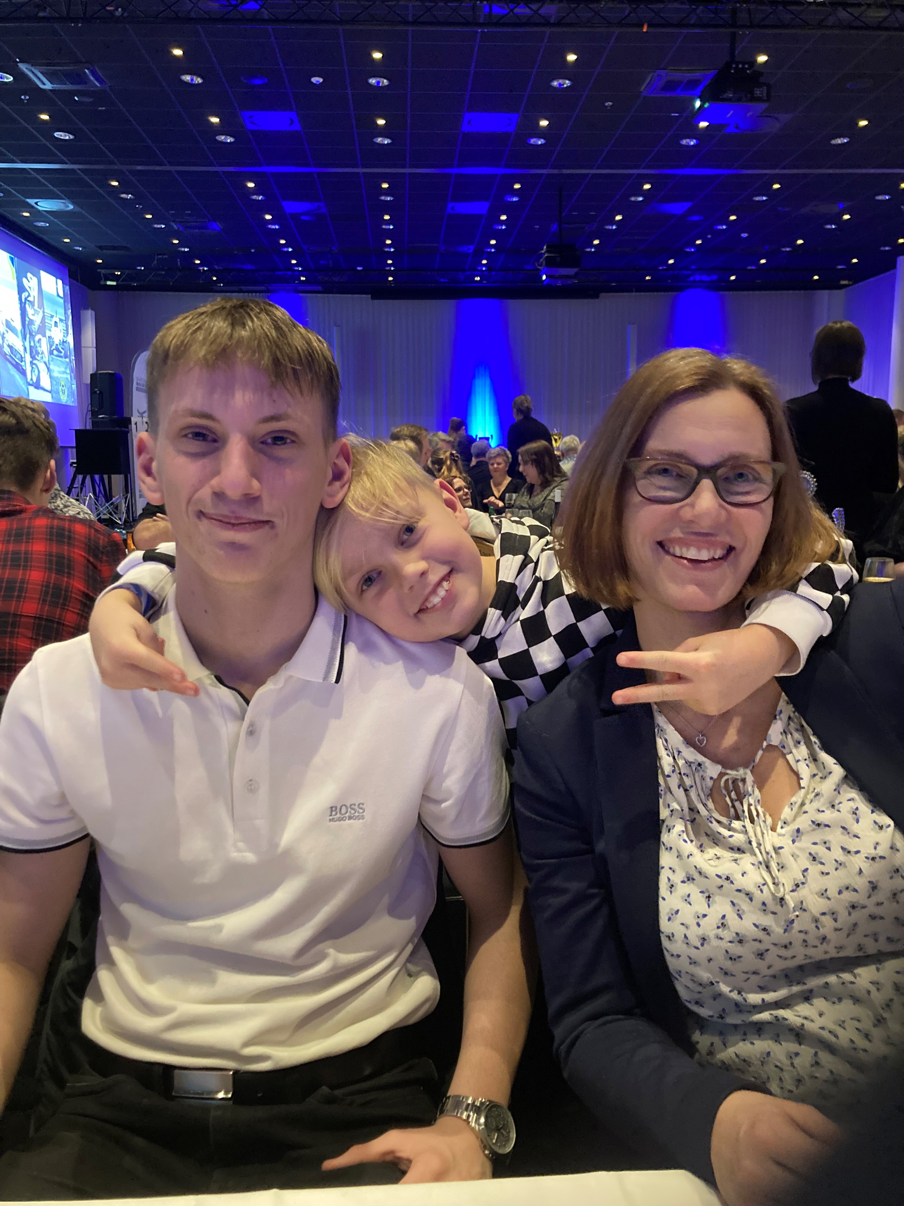 På högra bilden: Max tillsammans med Maria Ribbnäs, ordförande i MAK samt extra-lillebrorsan Melvin Ribbnäs.
