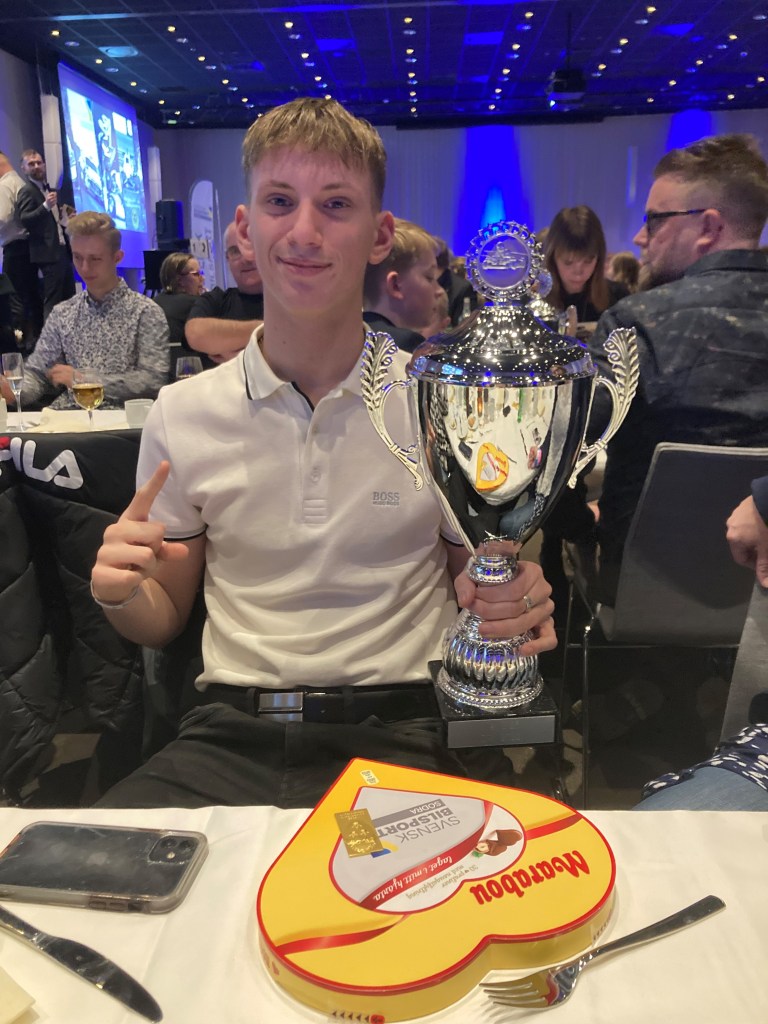 Årets prisutdelning i distriktsmästerskapet delades ut på Quality hotell i Malmö. Max fick ta emot förstapriset i senior 125 för de sammanlagda insatserna på de fyra Skåne-banorna.
